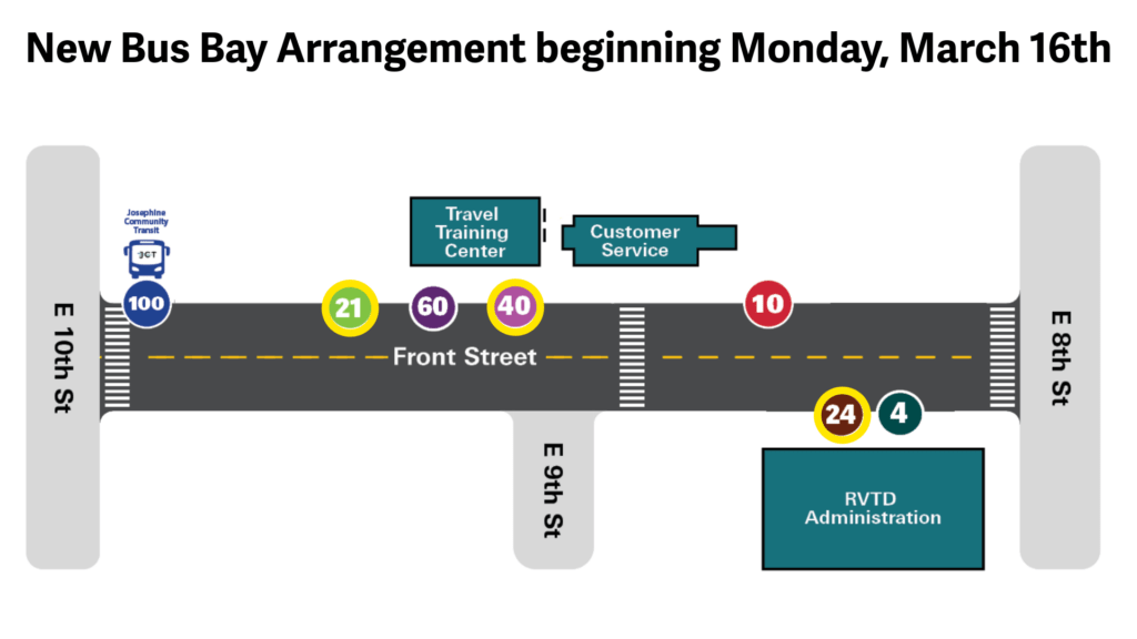 Beginning Monday, March 16, bus departure locations for the Route 40, 21, and 24 at Front Street Station will change.