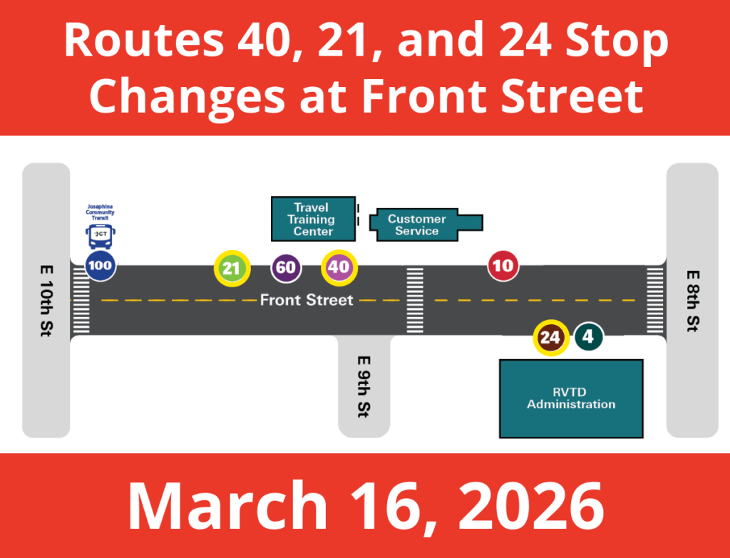Please check the new departure locations before boarding. If you need help, contact RVTD Customer Service.